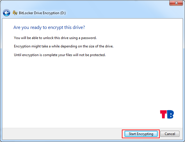 در این مرحله Start Encryption را برای شروع عملیات رمزگذاری انتخاب کنید.